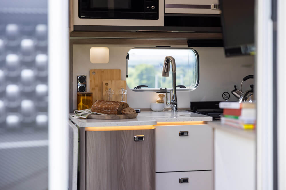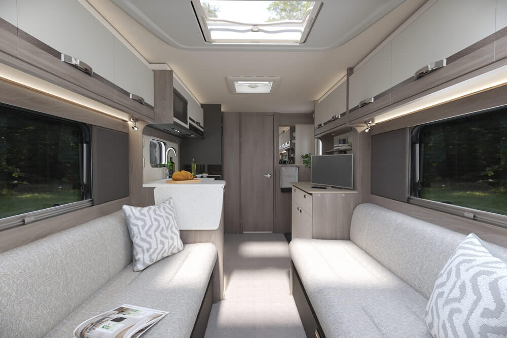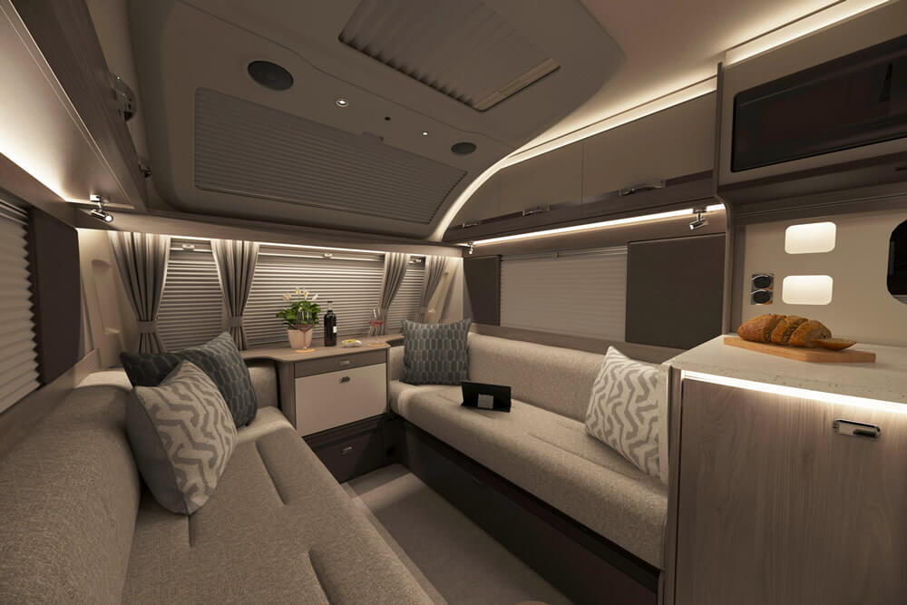 Returning by popular demand, Conqueror is a well-loved favourite among experienced caravanners. Thoughtfully designed with comfort in mind, it offers a refined space that feels just like home – from wider double beds complete with luxurious Duvalay mattresses to the warmth of Alde heating. With a generous kitchen space, clever storage and soft, atmospheric lighting throughout, Conqueror blends practicality with sophistication, creating the perfect setting for relaxing getaways.