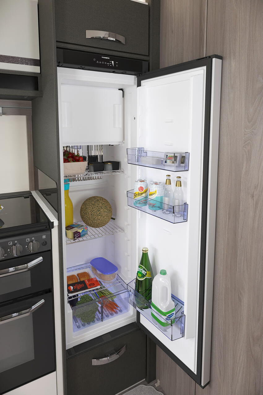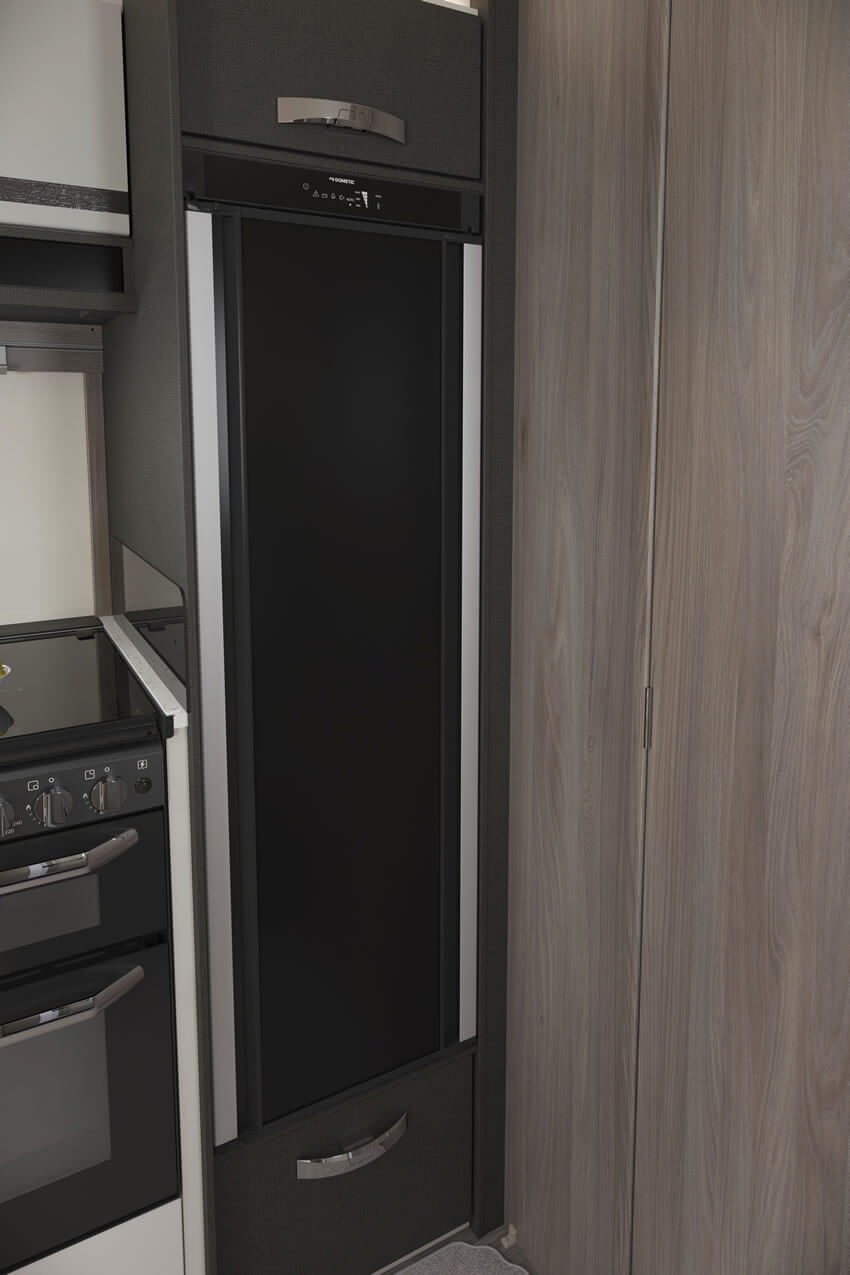 • Dual hinged Dometic 133 litre tall slimline fridge with 12 litre removable freezer