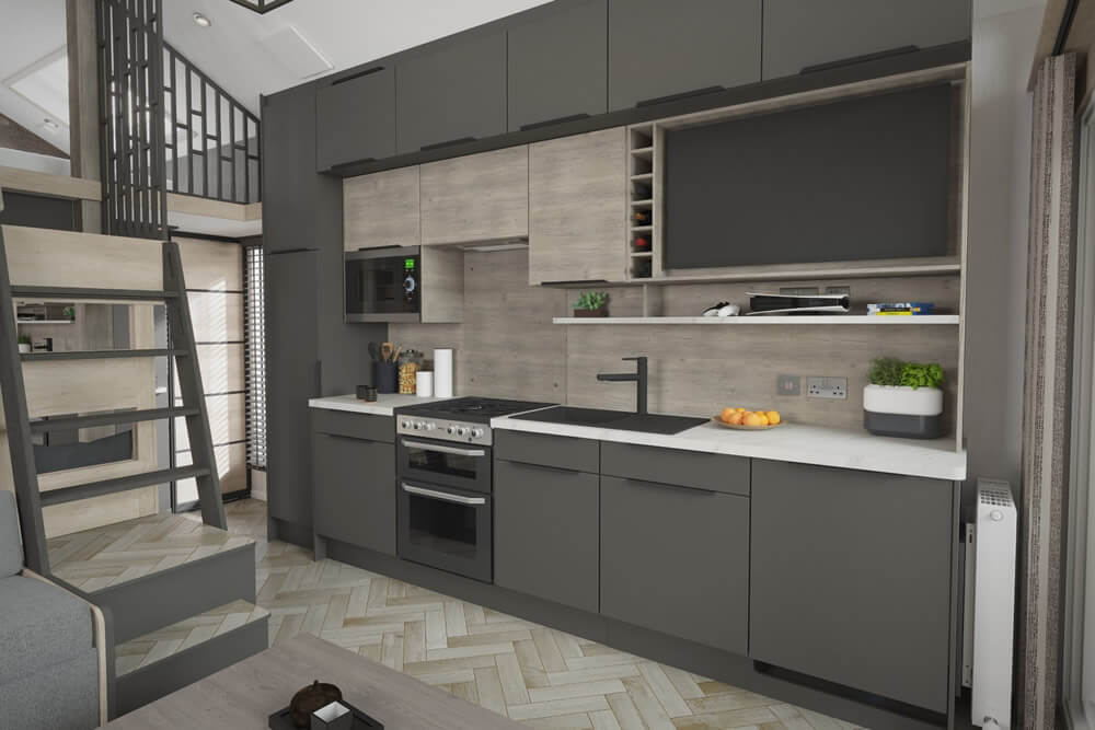 For ingeniously compact living, modern style and enviable luxury, discover the S-Pod 6. Due to a cleverly designed mezzanine, featuring a raised bunk area, the S-Pod 6 is capable of comfortably sleeping six people.